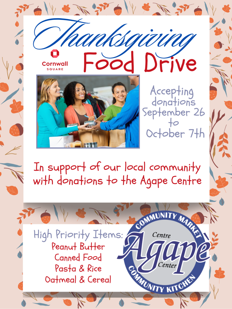 PromotionsThanksgiving Food Drive in Support of The Agape CentreSep 26, 2025–Oct 07, 2025Accepting donations from September 26 to October 7th. Click here to learn more.